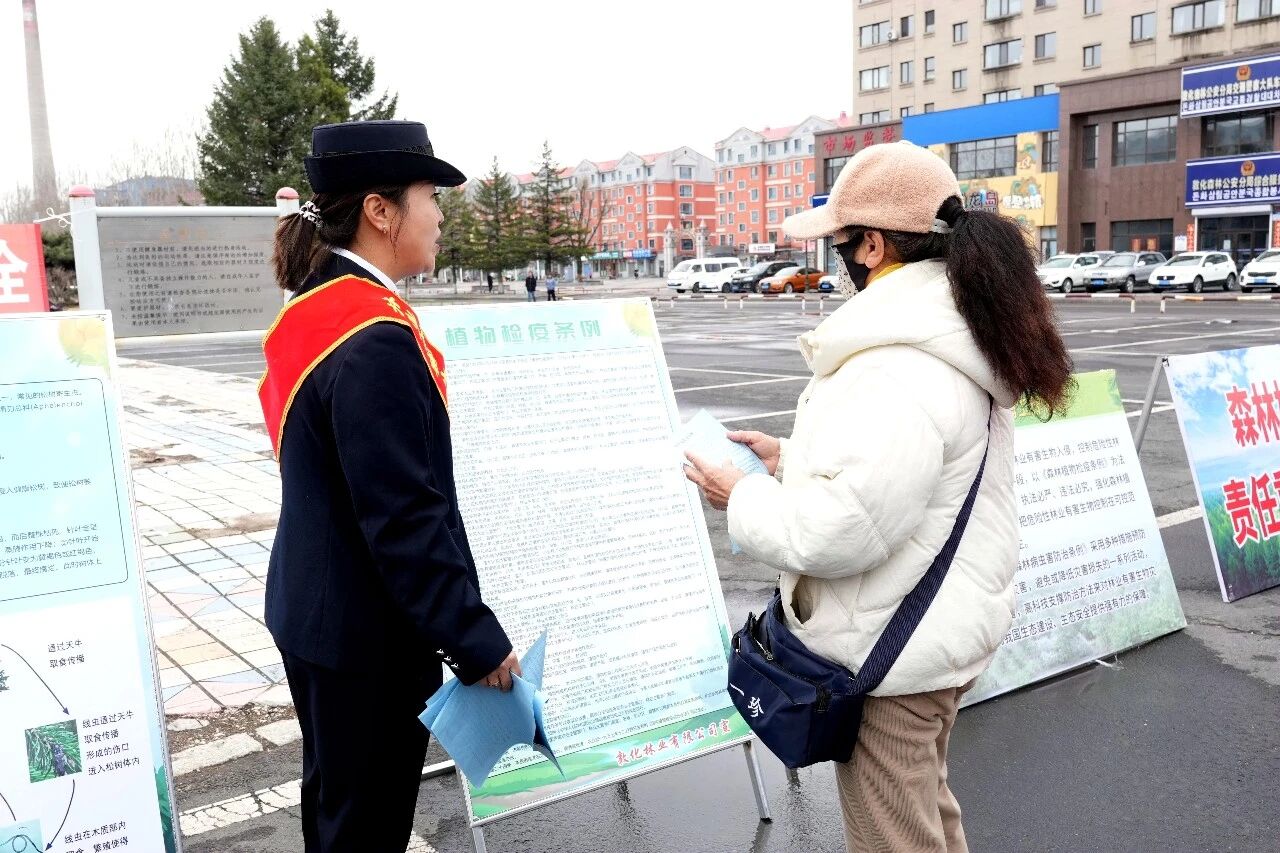为进一步增强林区职工群众的生态保护意识,提升对林业有害生物的防控能力,4月15日,敦化林业有限公司森林病虫防治检疫站在丹峰广场开展以“科学防控林业有害生物 全力保障敦林生态安全”为主题的林业有害生物防治宣传活动。